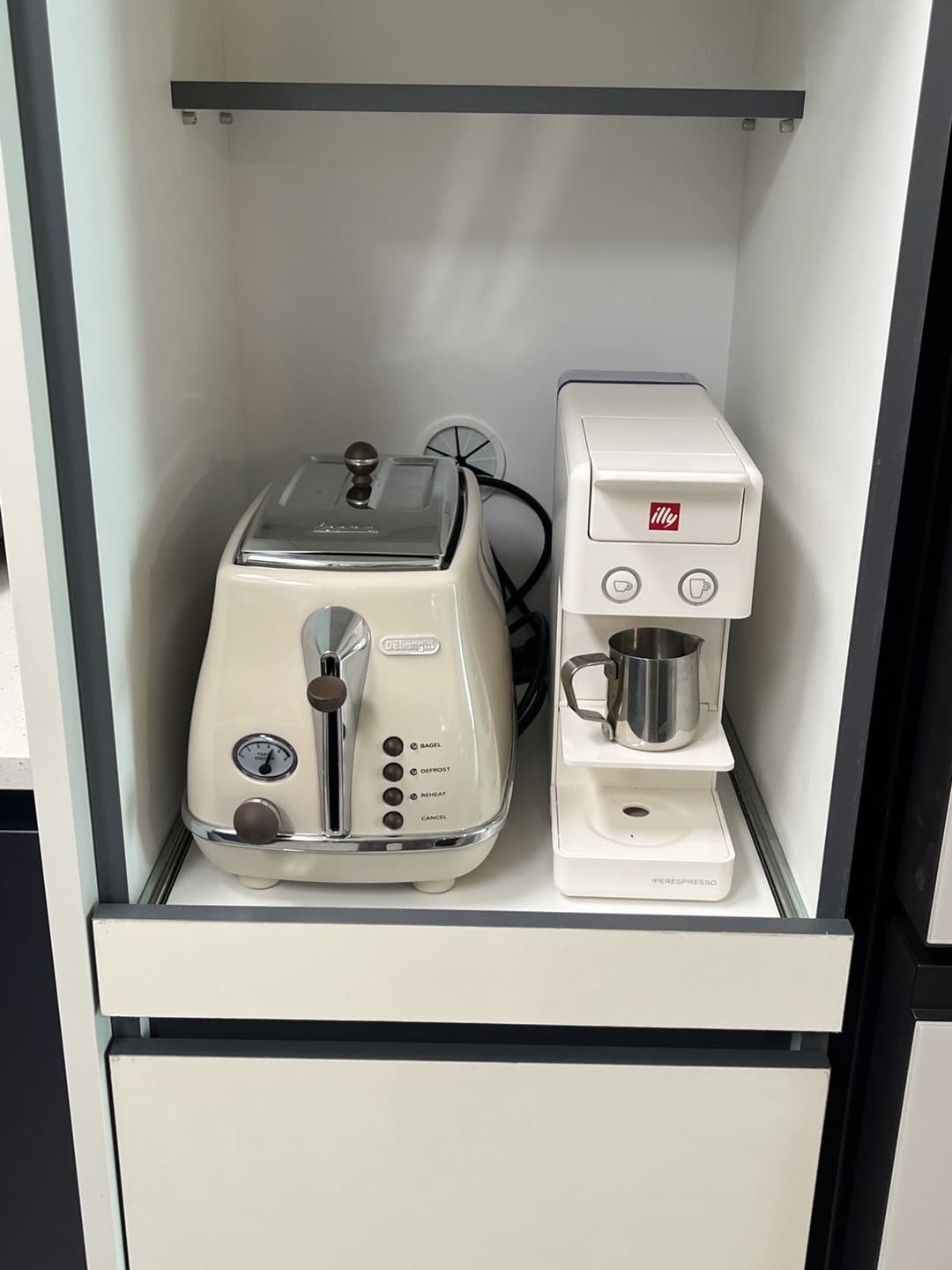 이렇게 토스터기와 일리커피머신을 두니 홈카페가 따로없다. 위쪽 장에는 커피 캡슐하고 좋아하는 티백을 뒀는데, 볼때마다 기분이 매우매우 좋다. 12만원이면 적은 돈은 아니지만 그래도 이렇게 딱 맞고 공간을 효율적으로 쓸 수 있는 장이 있다면 더할나위 없이 좋은 것 아닐까나요?