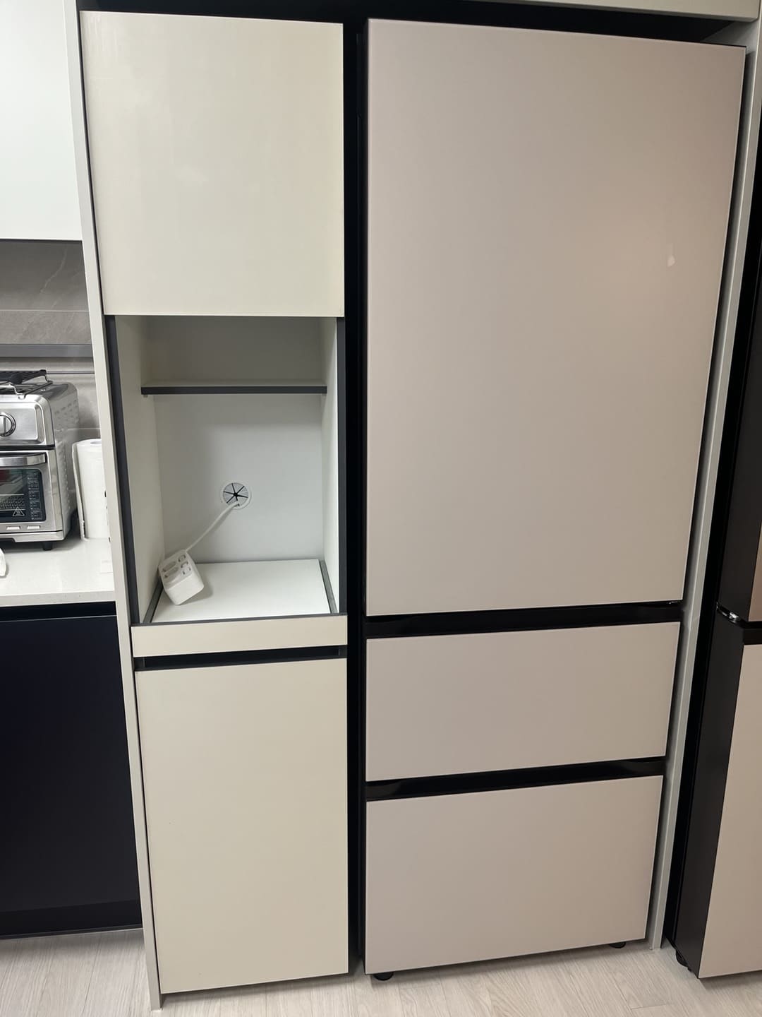 이걸 없앨 수 있는 틈새장이 무엇이 있을까하며 오늘의 집을 열심히 뒤져봤는데, 이런 니즈가 많은건지 42CM 정도 남는 그 틈새에 들어갈 수 있는 40CM 장을 찾았다. 게다가 LG 오브제/ 삼성 비스포크 색상에 이질감이 없도록 색상도 비슷하고 다양하게 출시했다는 점! 진짜 요즘 사람들 너무너무 똑똑한 것 같다.