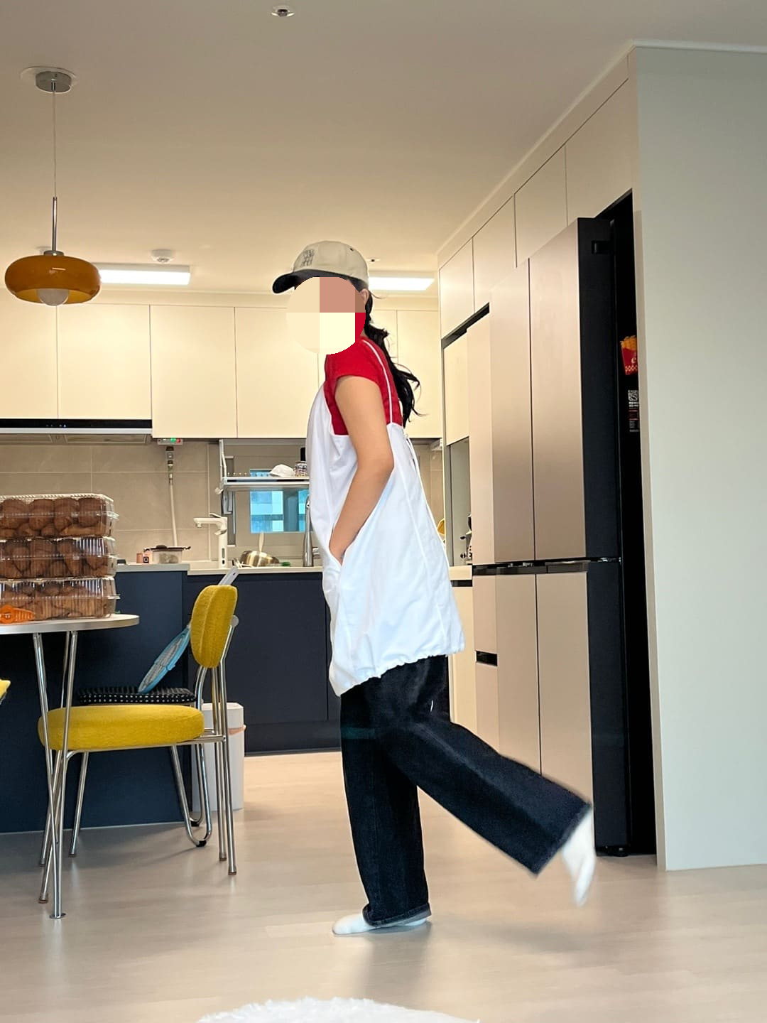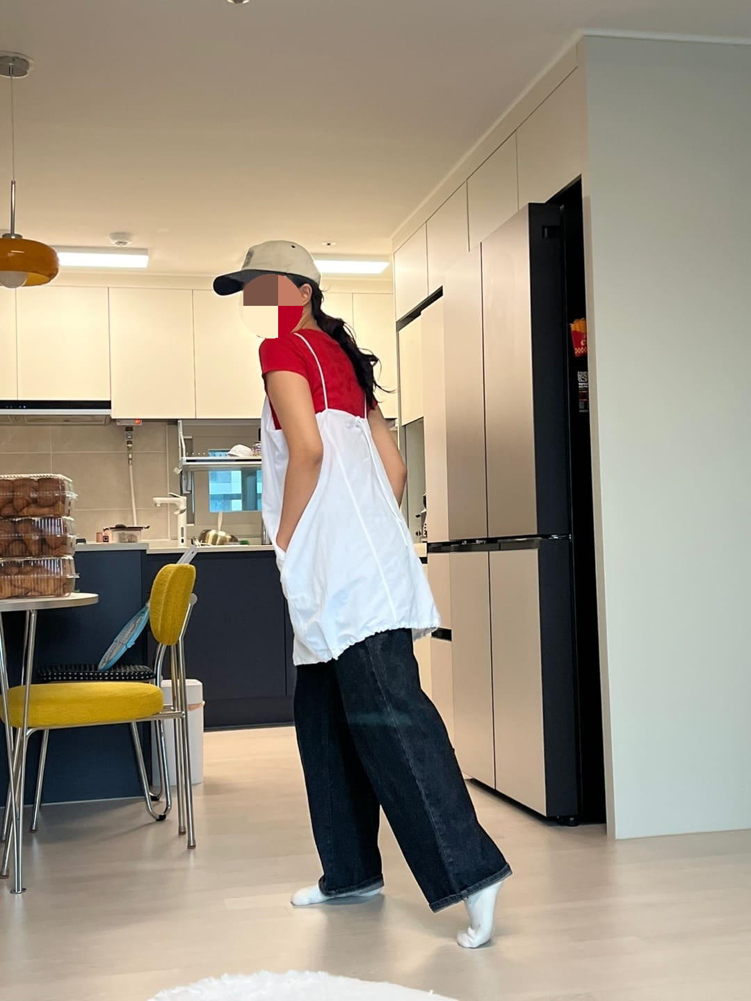 살짝 앞치마 같은 느낌이 있긴한데, 시원해보여서 좋긴하다! 귀찮아서 대충 피팅했지만 흰 티셔츠랑 단독으로 원피스만 입어도 예쁠듯!