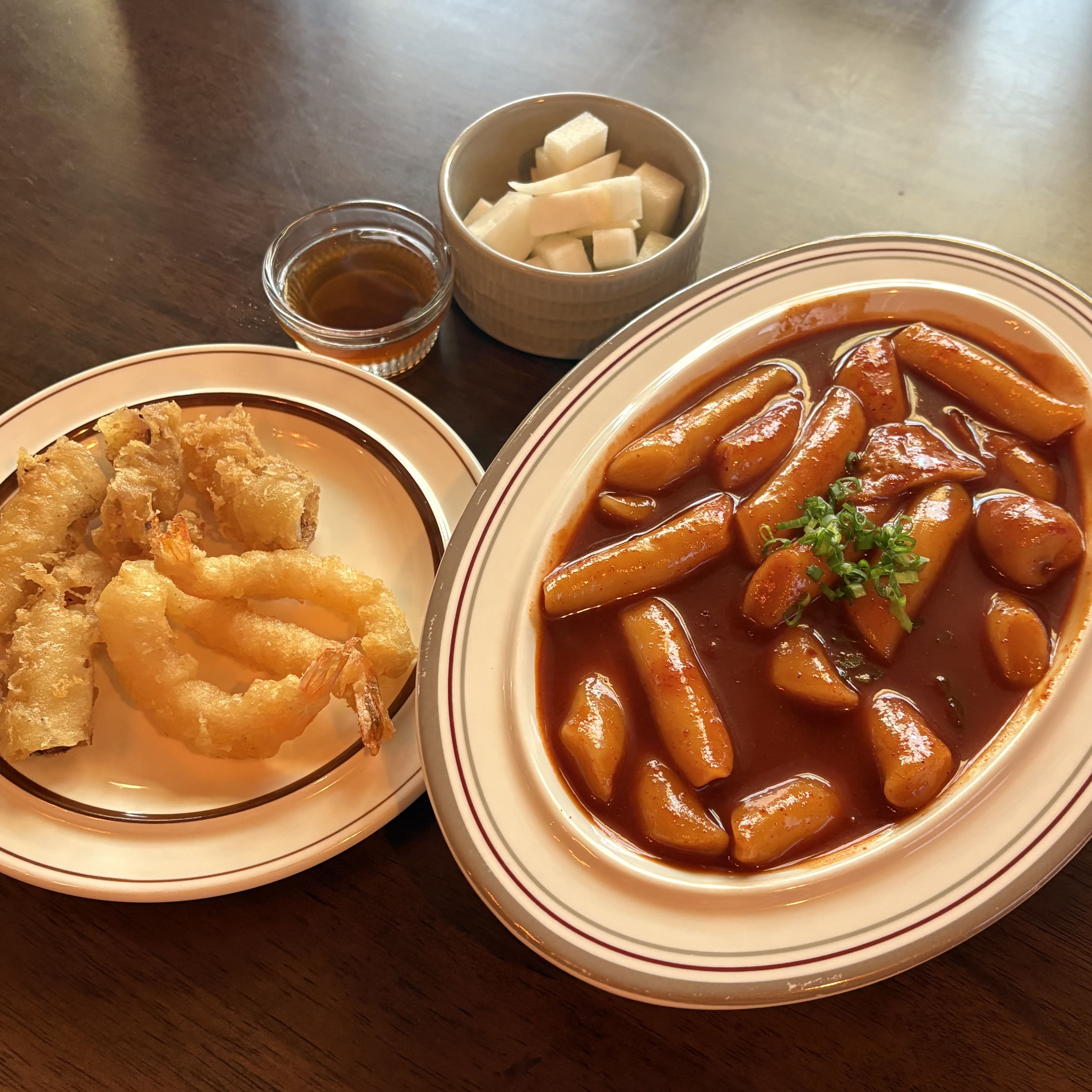주문한 메뉴들이 나왔다. 여기 떡볶이 정말 맛있는데, 적당히 매콤하고 적당히 달달하고 적당히 꾸덕해서 정말 맛있다. 떡은 쌀떡이고 어묵도 적당히 들어가 있어 칼칼+꾸덕한 쌀떡볶이를 좋아하는 분들이라면 싫어할 수가 없다.