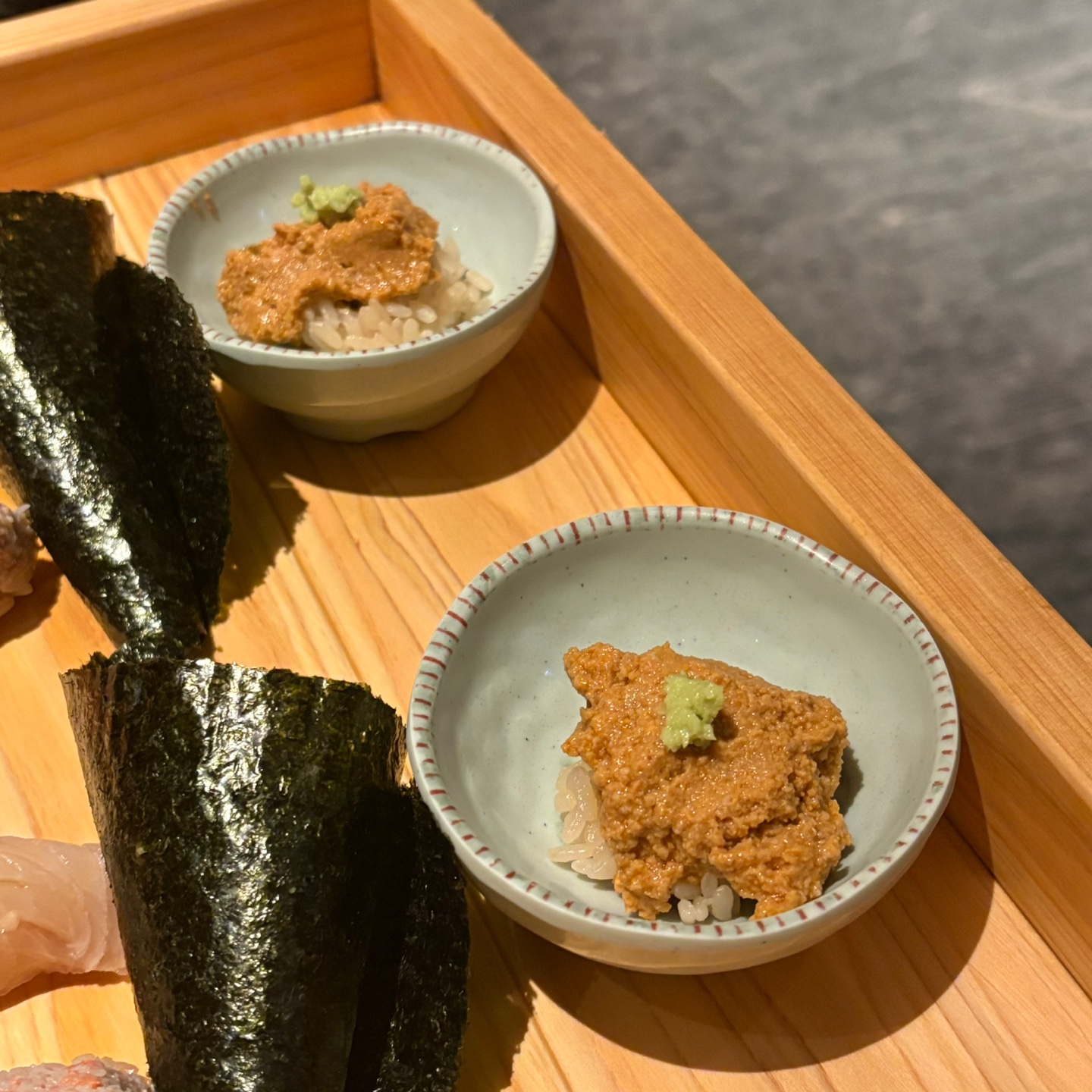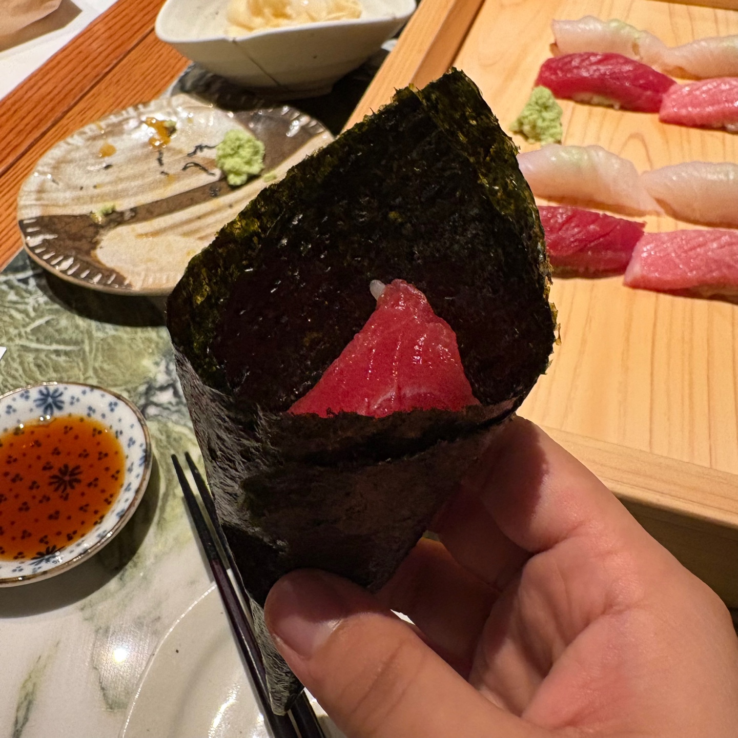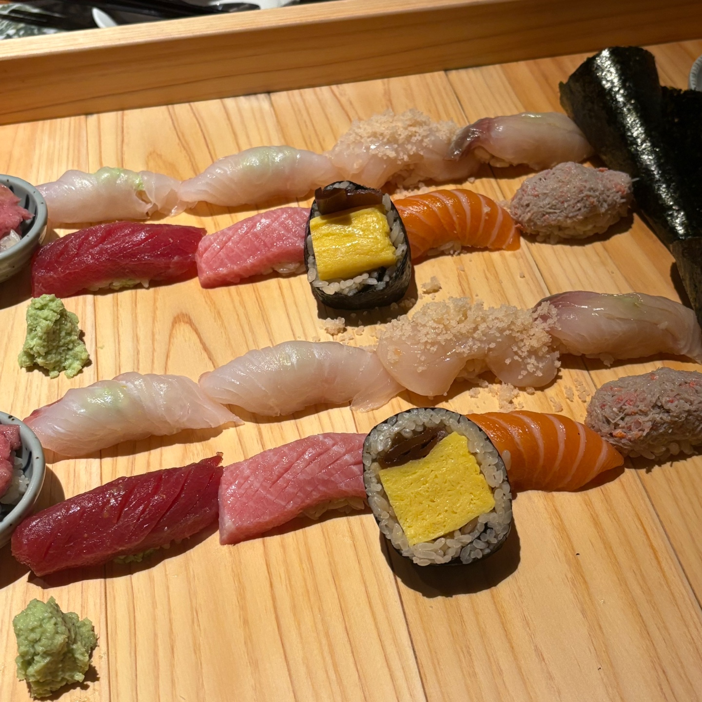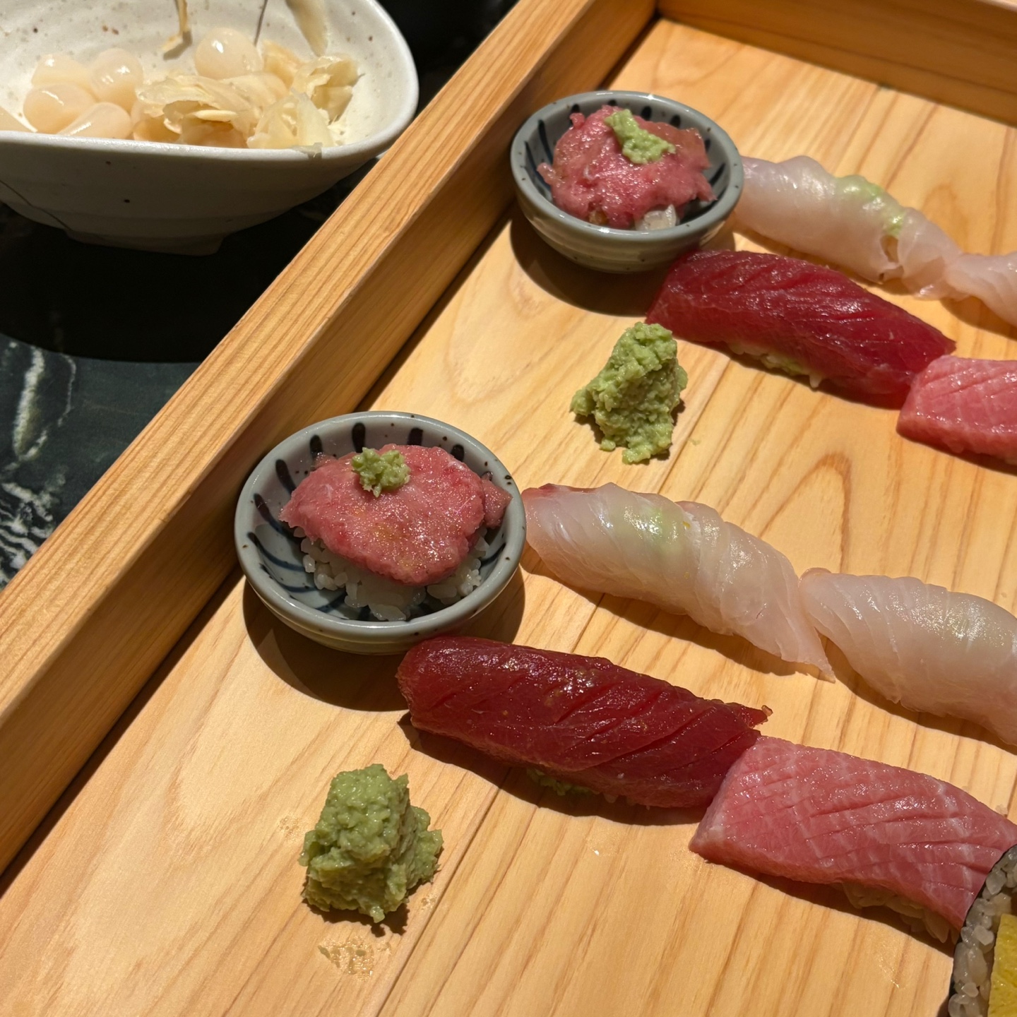 테이블에서 먹게되면 판초밥으로 나오게 되는데, 먹는 순서와 방법을 서버분들이 간단하게 설명해주신다. 초밥하나하나 설명하는 건 직접 가봐야 알테니..ㅎ 그냥 회퀄리티 정말 너무 좋고 맛있었다는 것만 알아도 될 것 같다. 특히 스시에는 와사비가 중요하다고 생각하는데 와사비 맛이 정말 일품이었음