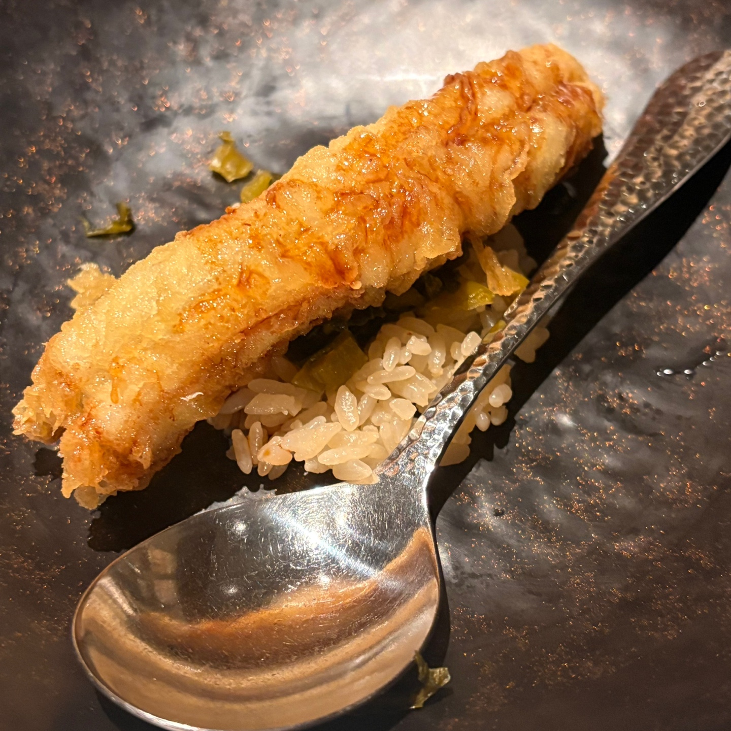 판초밥을 다 먹으면 다음 코스인 텐동을 고를 수 있는다. 아나고(장어)텐동과 에비(새우)텐동 중 고를 수 있었는데, 당연히 장어아닌가요? 장어가 생각보다 실하고 커서 정말 맛있게 먹었다.(츠케모노라 해야 하나 갓김치도 살짝 있어서 정말 맛있게 먹었다)