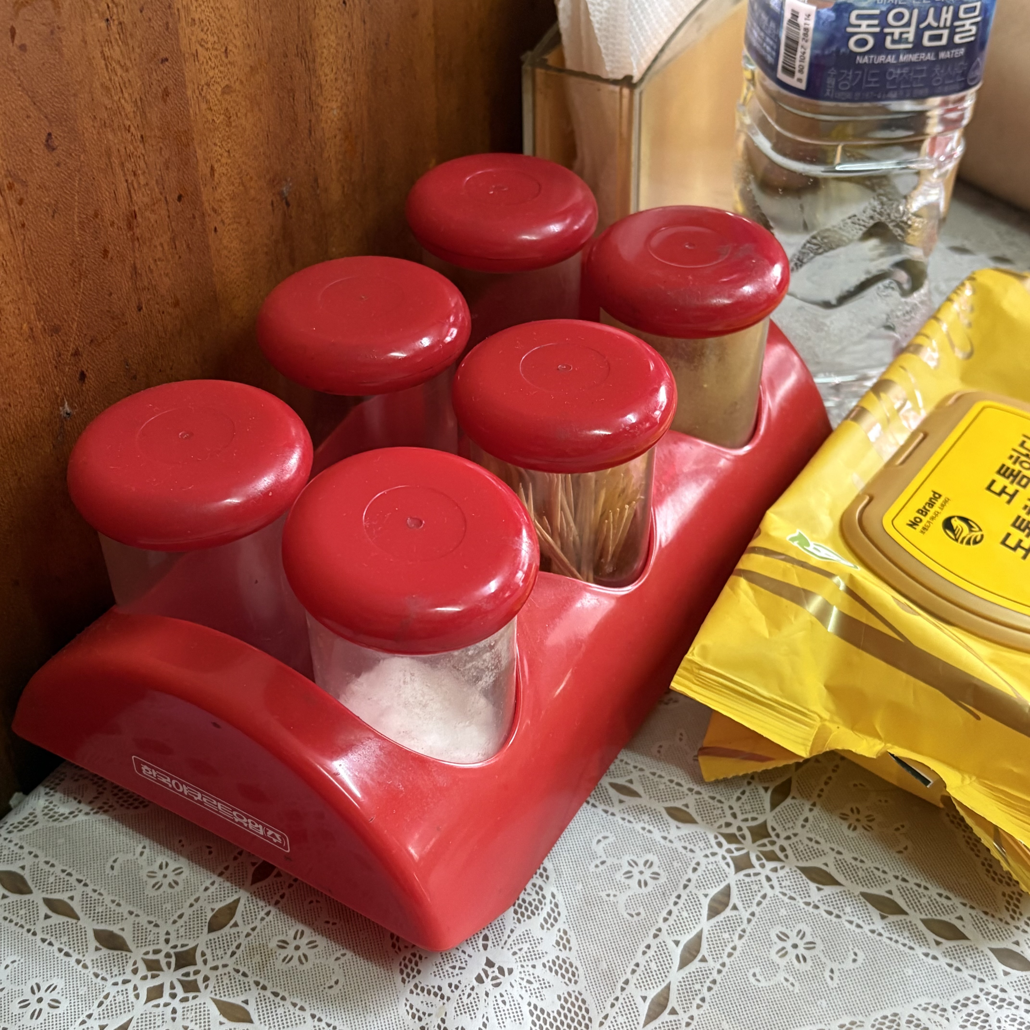 우리는 더워서 매장 안쪽에서 먹었는데, 정말 오래된 느낌이 나는 한국야쿠르트유업 소스통에 이쑤시개, 후추, 소금이 담겨져있었다. 사장님의 배려가 돋보이는 부분!