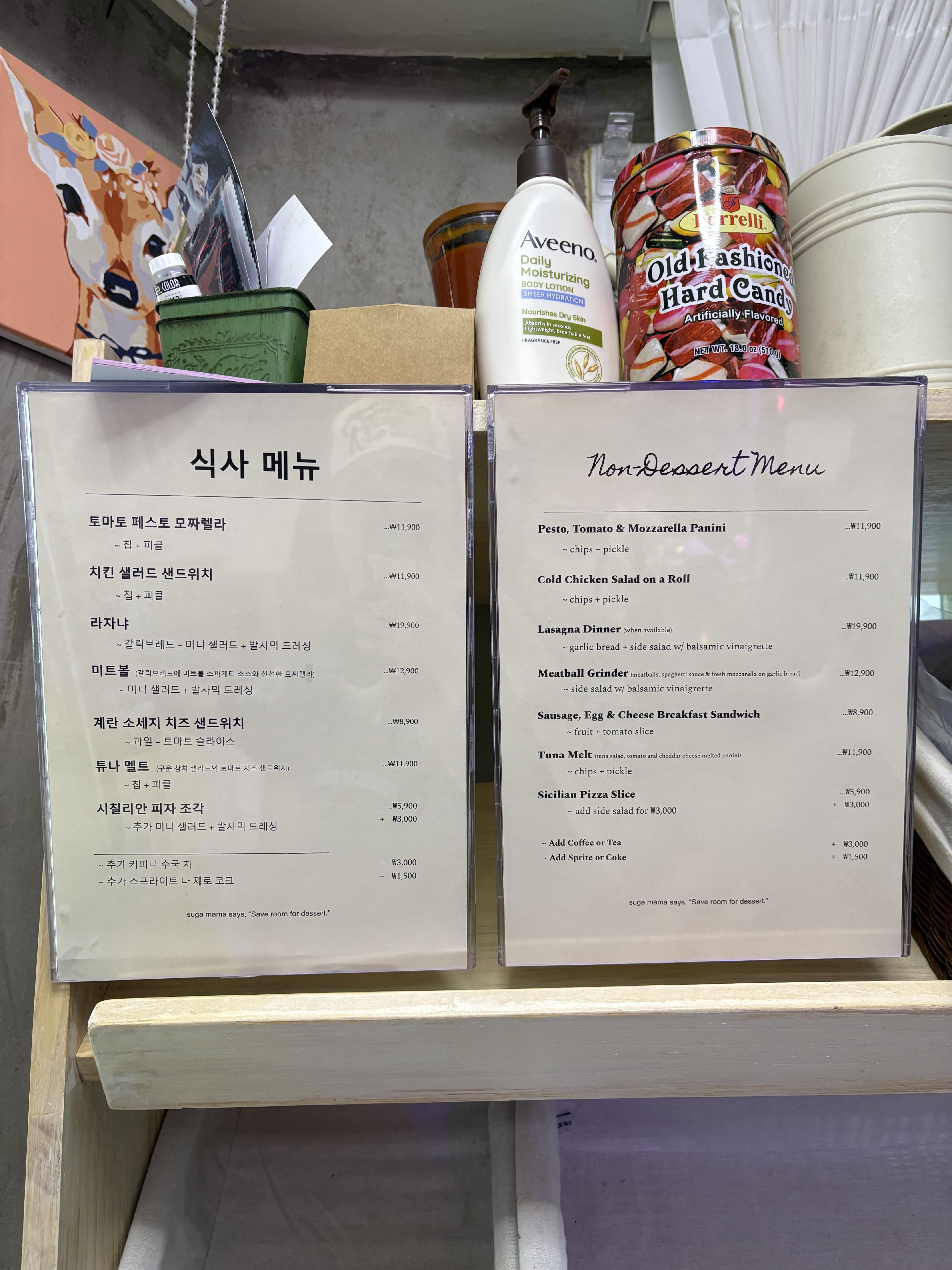 디저트 크기에 비해 절대 저렴하지 않은 가격..! 특히 애플파이는 9천원이라는 상당한 가격대를 가지고 있었다. 마치 미국 환율이 그대로 적용된 듯한 가격..! ㅎㅎ