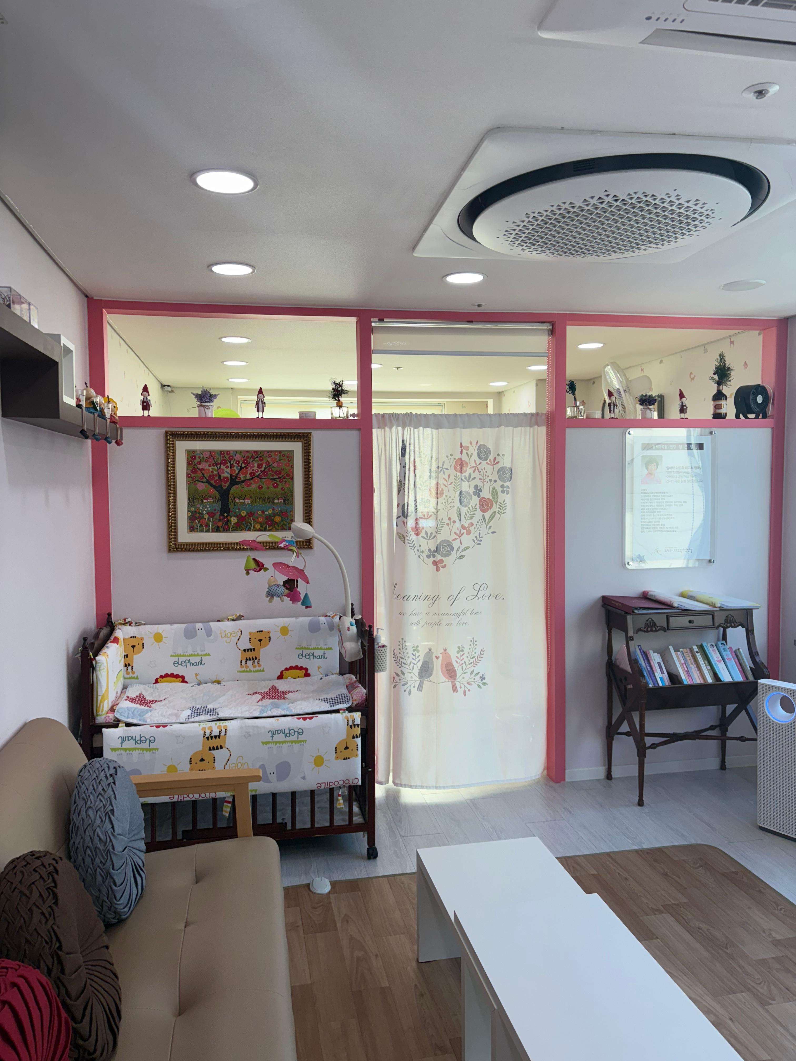 12층 이라서 그런지 개방감이 있어서 정말 좋았고 무엇보다 아기랑 같이 올 수 있도록 아기용품도 마련되어 있는 점이 매우 좋았다. 아기 체중계도 있고 여러가지가 있어서 부득이하게 아기랑 오셔야 하는 분들도 마사지 받는 곳 바깥에서 이용이 가능했다.(남편도 같이 와서 기다려도 된다고 하신다)