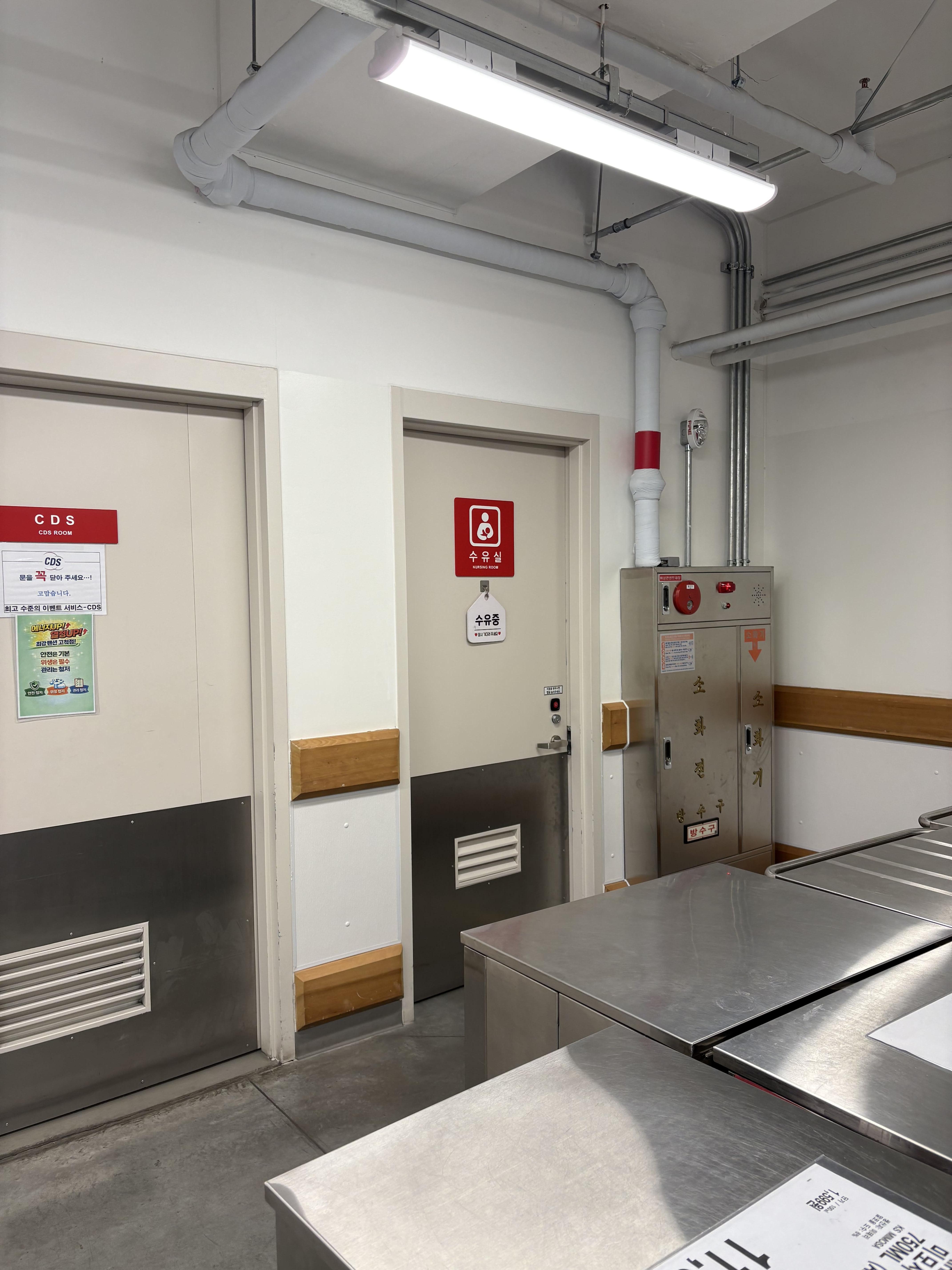 CDS라는 곳 오른쪽에 수유실이 위치해 있고, 아쉽게도 여러명이 들어가는 수유실은 아니라서 이미 쓰고 있는 분이 있다면 기다려야한다. 내가 들어갈 때는 수유중이라는 팻말을 걸고 문을 닫으면 됨!