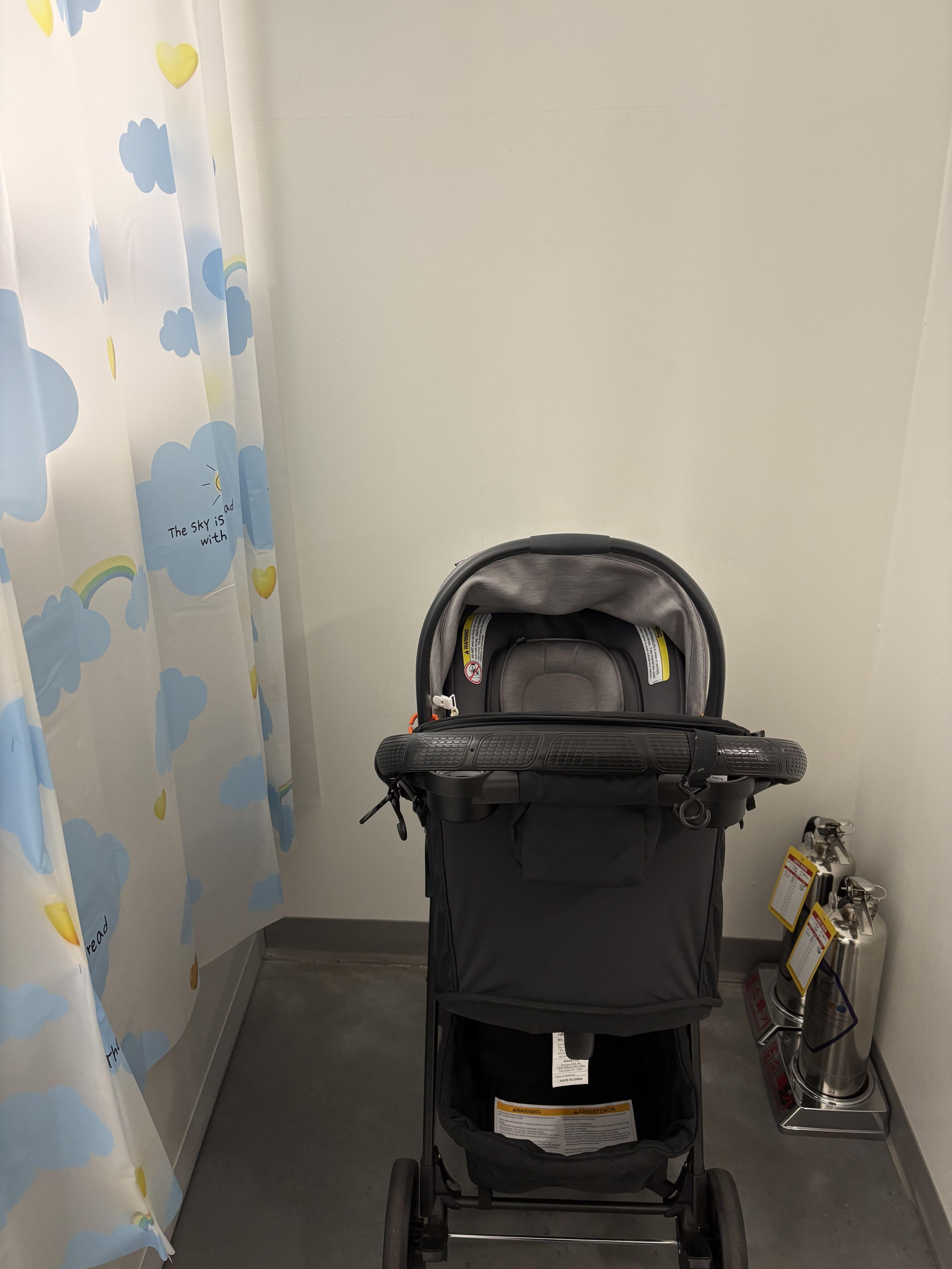 수유실 안으로 들어오게 되면 유모차를 세워둘 수 있는 곳이 있다. 자리도 넉넉해서 디럭스 유모차도 충분히 들어갈 수 있는 공간이다. 옆에 커튼도 있어서 커튼을 치면 수유할 수 있는 공간이 나온다.