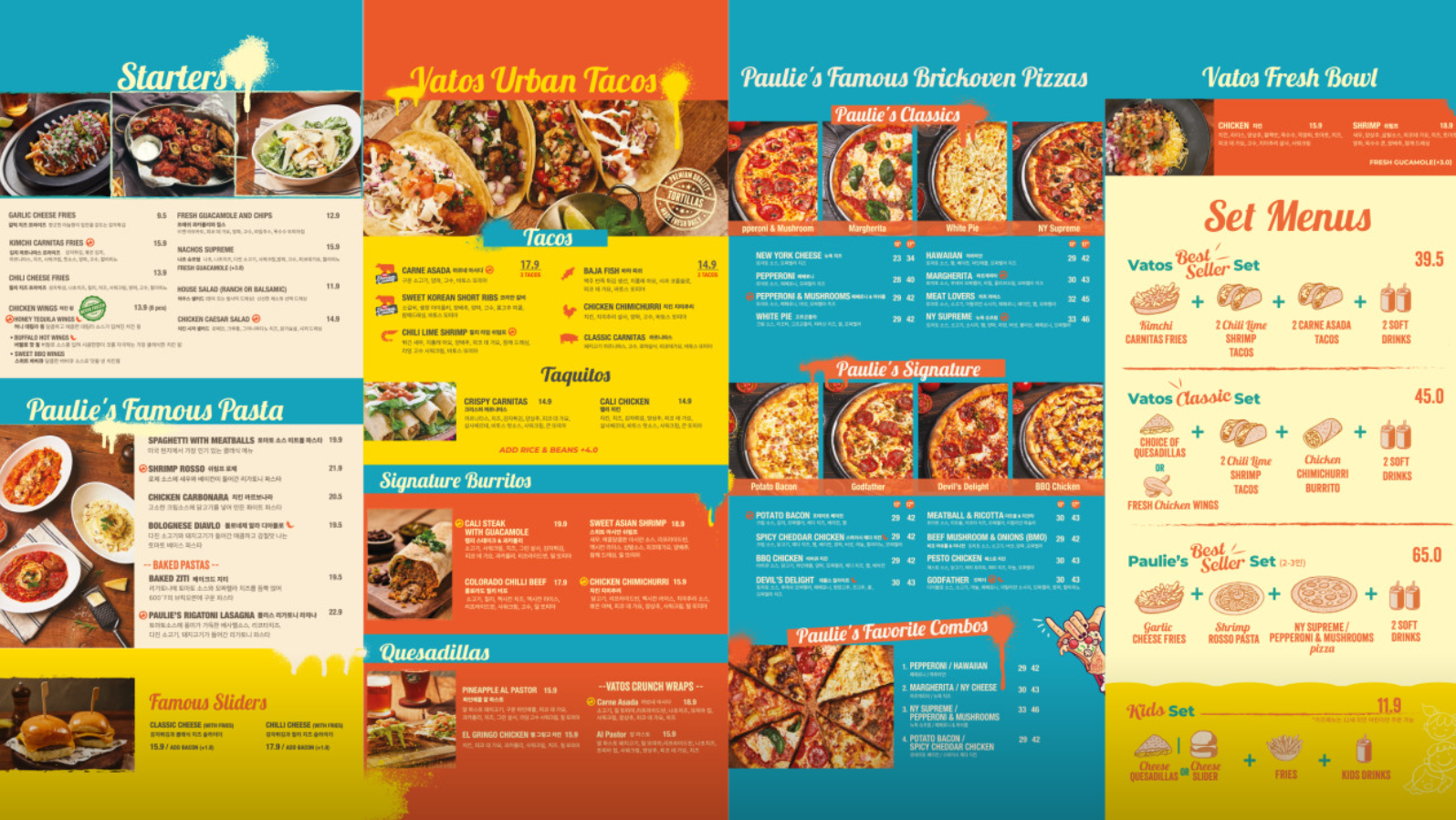우리는 바토스에서 가장 유명한 메뉴인 김치 까르니타스 프라이즈와 폴리스 콤보 즉, 반반피자 1판을 시켰다. 피자는 NY슈프림, 페페로니&머쉬룸으로 주문했다. 콤보메뉴는 아래 작게 있으니 메뉴판 오른쪽 하단을 확인하면 된다.